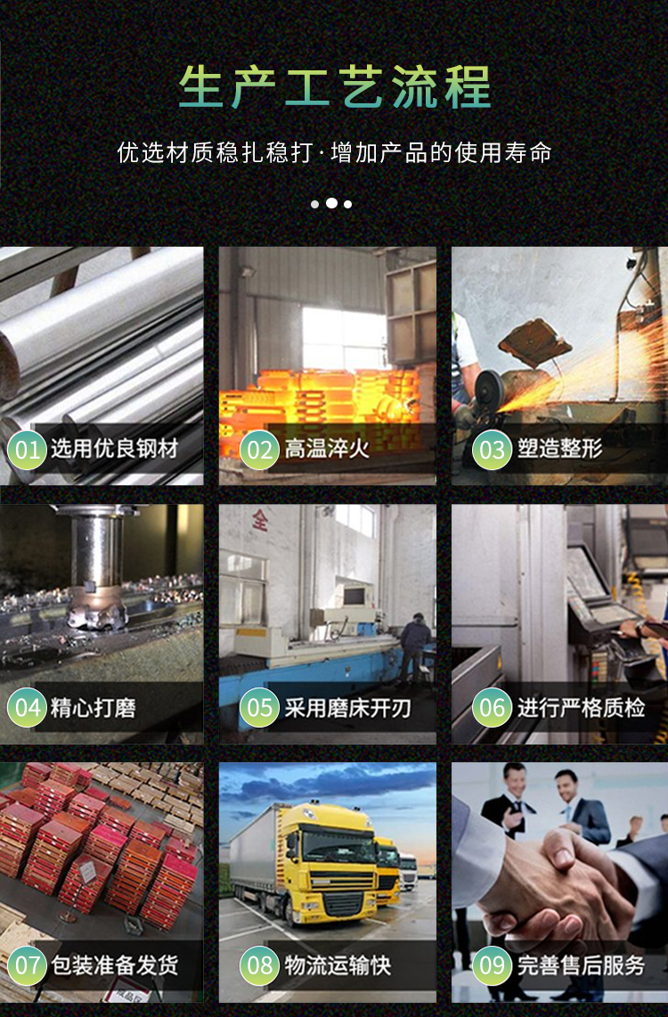 主要材質(zhì)為:9CrSi、D2、SKD-11、Cr12MoV、H13、SKH-51、W6Mo5Cr4V2、W1Cr4V等。